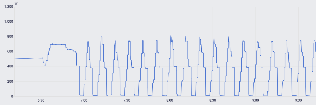 Im Bereich zwischen 400 und 600 Watt ist die Anlage hingegen deutlich intelligenter programmiert und regelt den Kompressor bedarfsgerecht (um wenigstens etwas Positives über Panasonic zu sagen).