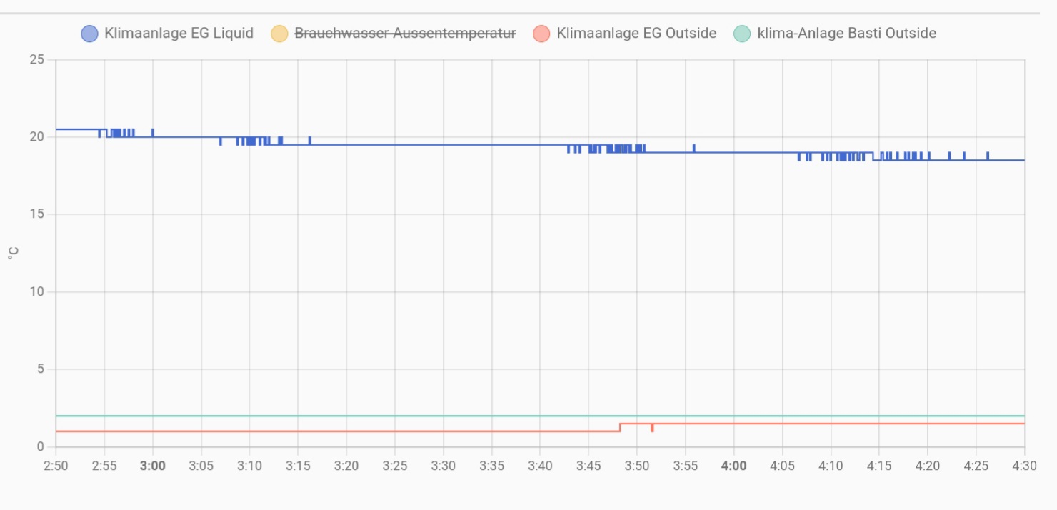 Objektiv betrachtet hatte ich in meinem ersten Winter nun mit der Klima genau 1 Nacht mit diesen Temperaturen. Insofern kann ich mir das komplett inklusive Zusatzheizung für die Abtauwanne noch komplett kneifen. Was aber im möglichen Betrieb über vielleicht 5-10 Jahre vorkommt, bleibt abzuwarten.