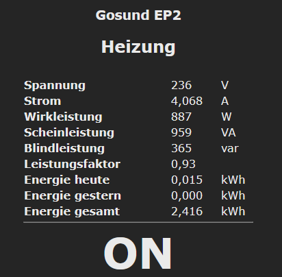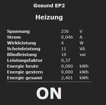 Wie oben gezeigt sind es bei mir in 8 Nachstunden ohne üblichen Betrieb 4 Heizstunden mit 35W. Wären 140Wh und bei 32Cent/Kwh sind es 4 Cent je Nacht. Wie gesagt, Unerheblich.