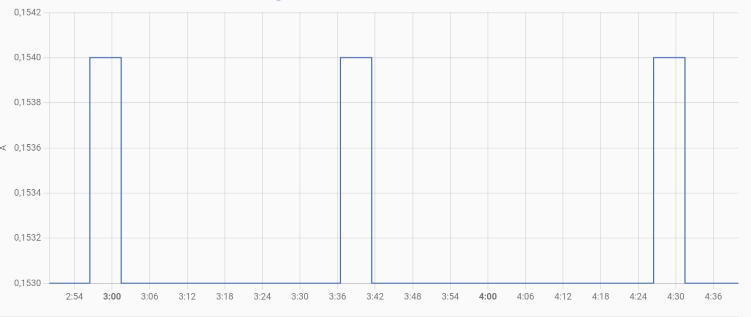 Bei der strom grafik sieht man aber auch einen dauerstrom von 0,153 A. Sind bei 230V 35 W. Was das ist kann ich nicht sagen. Könnte der grund-versorgungsstrom der Anlage sein, ich glaube nicht, dass die diese ölpumpe ist. 10 stunden × 35W = 11 Cent Stromkosten pro Nacht.