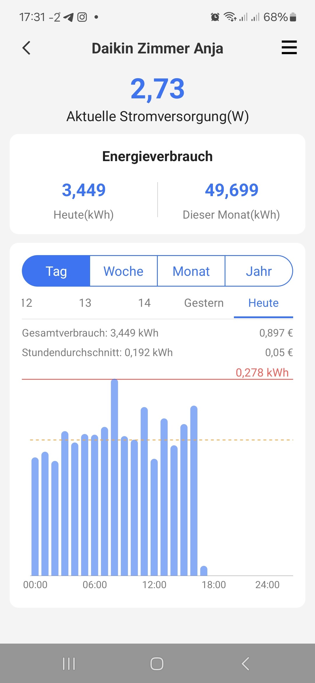 Auch deshalb habe ich ne smarte steckdose vor der klimaanlage, weil es keinen stromwert von der klimaanlage gibt.