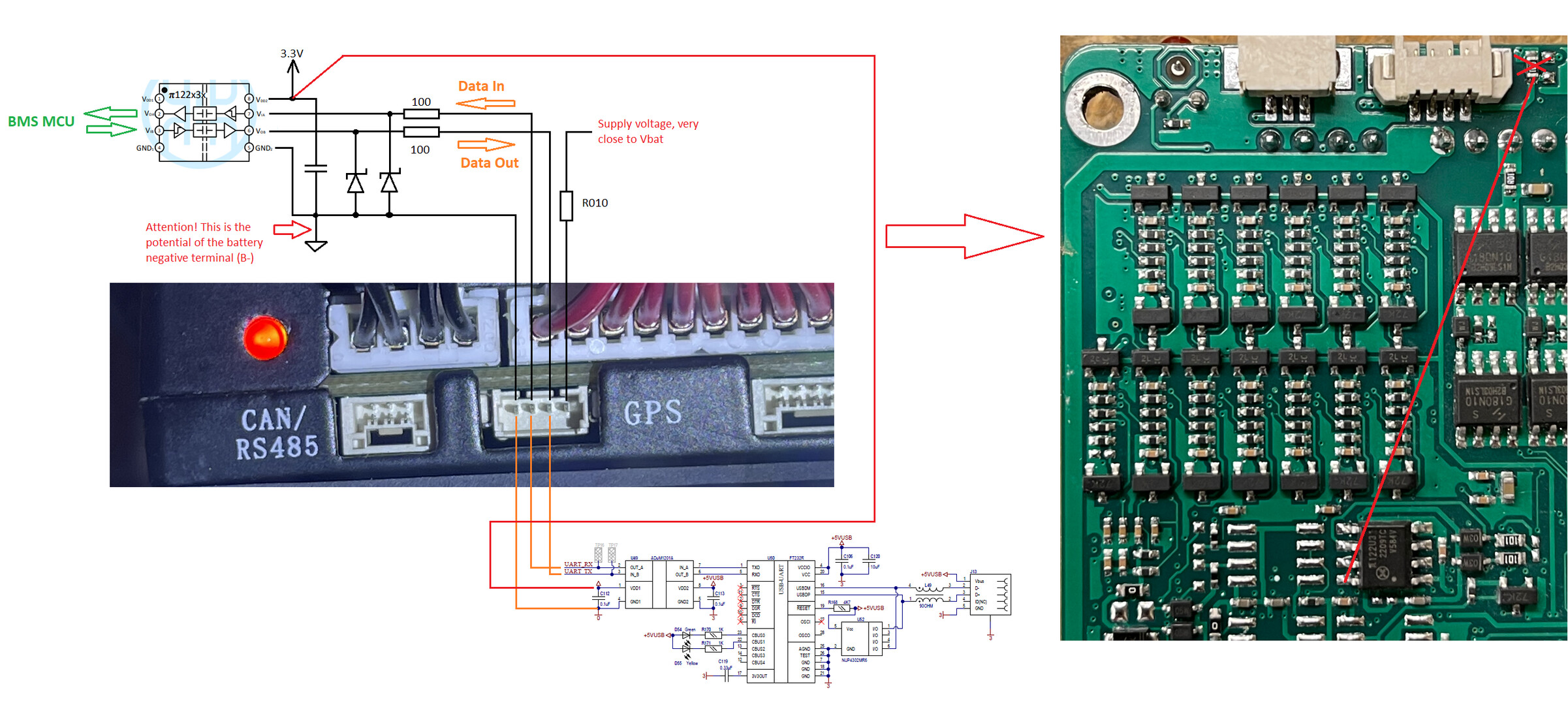 Klar, diese Schnittstelle ist ein 3.3V TTL UART, wichtig ist, dass der Bezugspotential des GNDs ist Batterie Minuspol (B-)