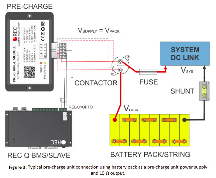 dazu noch die PreCharge Unit (Anleitung von hier https://www.rec-bms.com/wp-content/uploads/2023/01/UserManualPrecharge_3_0_Timeset.pdf)