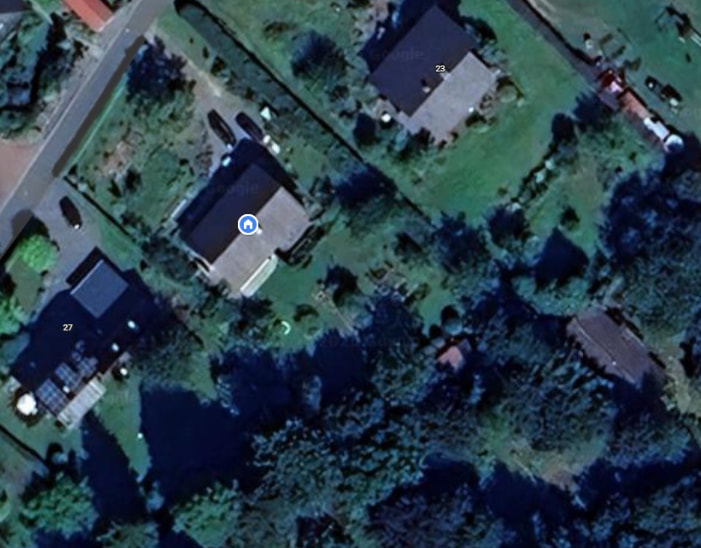 Besonderheit: Massive Verschattung durch hohe Bäume (Süd-West) auf dem Nachbargrundstück. Im Winter erreicht die Sonne laut Sonnenstands-Check fast nur die oberste Ziegelreihe. Ein Kamin wirft zudem ab mittags Schatten.