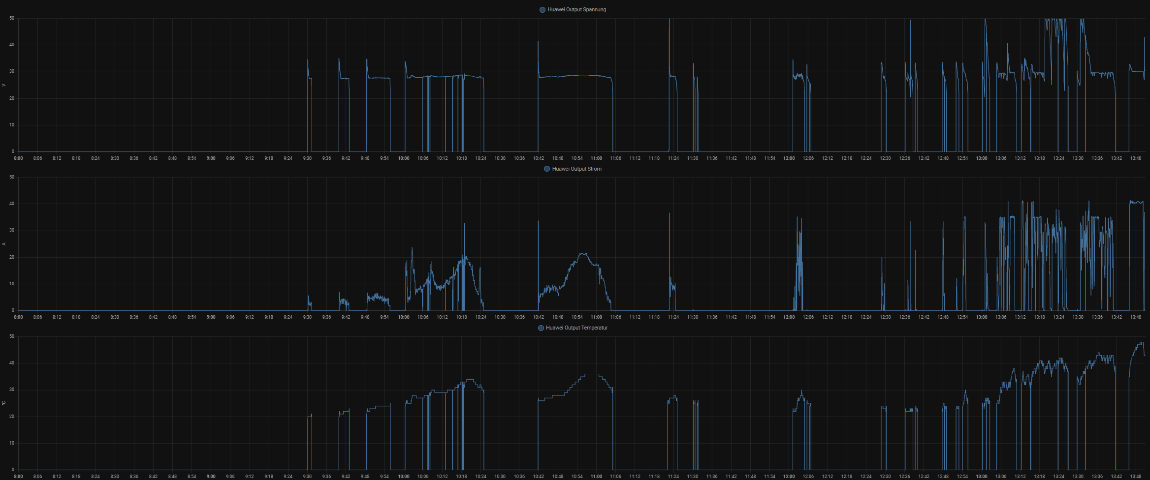 Das System soll über die Nacht die Grundlast mit Hilfe eines statischen Wertes (ca 400 - 500Wh) abdecken. Bei 10h Betrieb wären das 4-5kW Leistung, für das System inkl. Wandlungsverlusten ein schöner Arbeitsbereich.