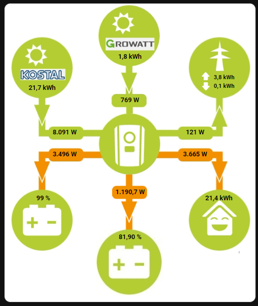 Ich würde ich die o.g. ~6,5kW LiFePos mittels Überschüssen aus den bestehenden Anlagen (9,4 kWp Kostal Plenticore SüdOst-Ausrichtung + 13,4kW BYD HVS, 4,2kWp Growatt MIC 3000 SüdWest-Ausrichtung) über AC-Verbindungen versorgen, jedoch nach Möglichkeit mit Low Budget und Nutzung bestehender Komponenten. Eine DC-seitige Ladung ist leider keine Option.