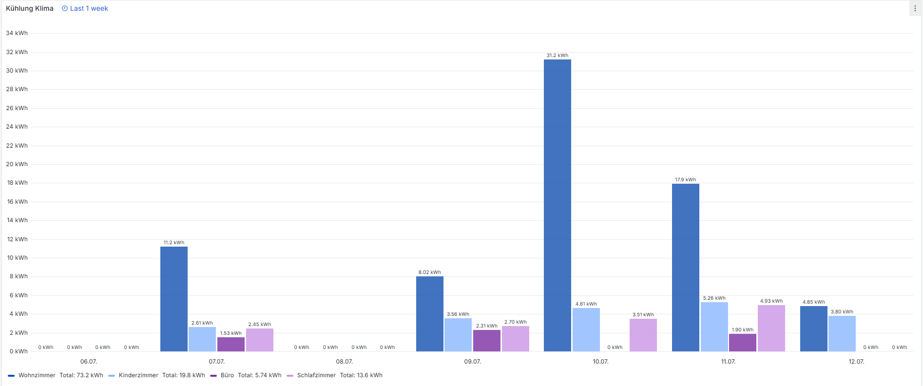 Interessante Grafik. Ist das die Kühlleistung gemäß Daikin in kWh oder der tatsächliche Verbrauch? Wenn ersteres, was ich vermute, wie viel hast Du in kWh tatsächlich verbraucht?