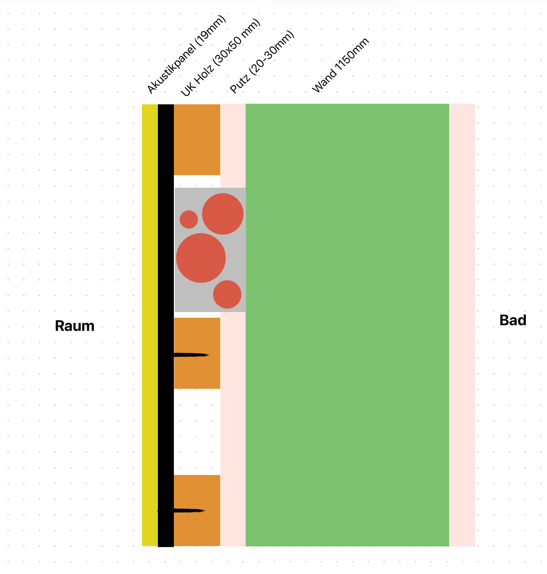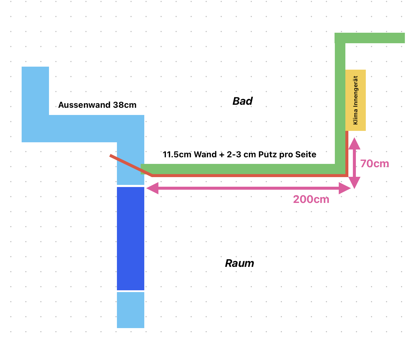 So schaut’s nun aus. In Grün ist die besagte Wand, in Rot die Leitungsführung.