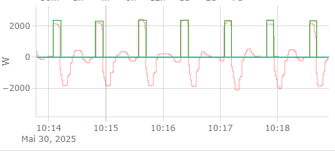 .... die Schwankungen um den SetPoint kann man (zumindest im Sommer) ganz gut kompensieren, indem man den z.B. auf 30 W Einspeisung stellt. Das grössere Problem bei mir (mit langsamem Regelkreis, weil nur SML Messung) sind die herdplatten, die den "perfekten Regelgau" haben - da wird praktisch fast die gesamte Leistung aus dem Netz bezogen und anschliessen aus dem Akku eingespeist: