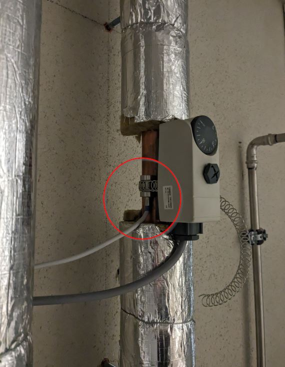 - Die Rücklauf-Temperatur liegt über der Vorlauf-Temperatur. Vermutung: Die Rücklauftemperatur wird direkt in der Therme ausgelesen, sodass der Sensor direkt von der sich erwärmenden Therme beeinflusst wird (oder der Sensor liest etwas ganz anderes aus, als vermutet). Beispiel: Die Therme heizt das Warmwasser auf und parallel dazu steigt auch die Rücklauftemperatur auf bis zu 50 °C an, ohne dass die Vorlauf-Temperatur mit ansteigt. Ob das Einfluss auf die Regelung der Puffer-Beladung hat, weiß ich natürlich nicht. Die Vorlauf-Temperatur wird über einen Anlegefühler direkt über 2) ausgelesen: