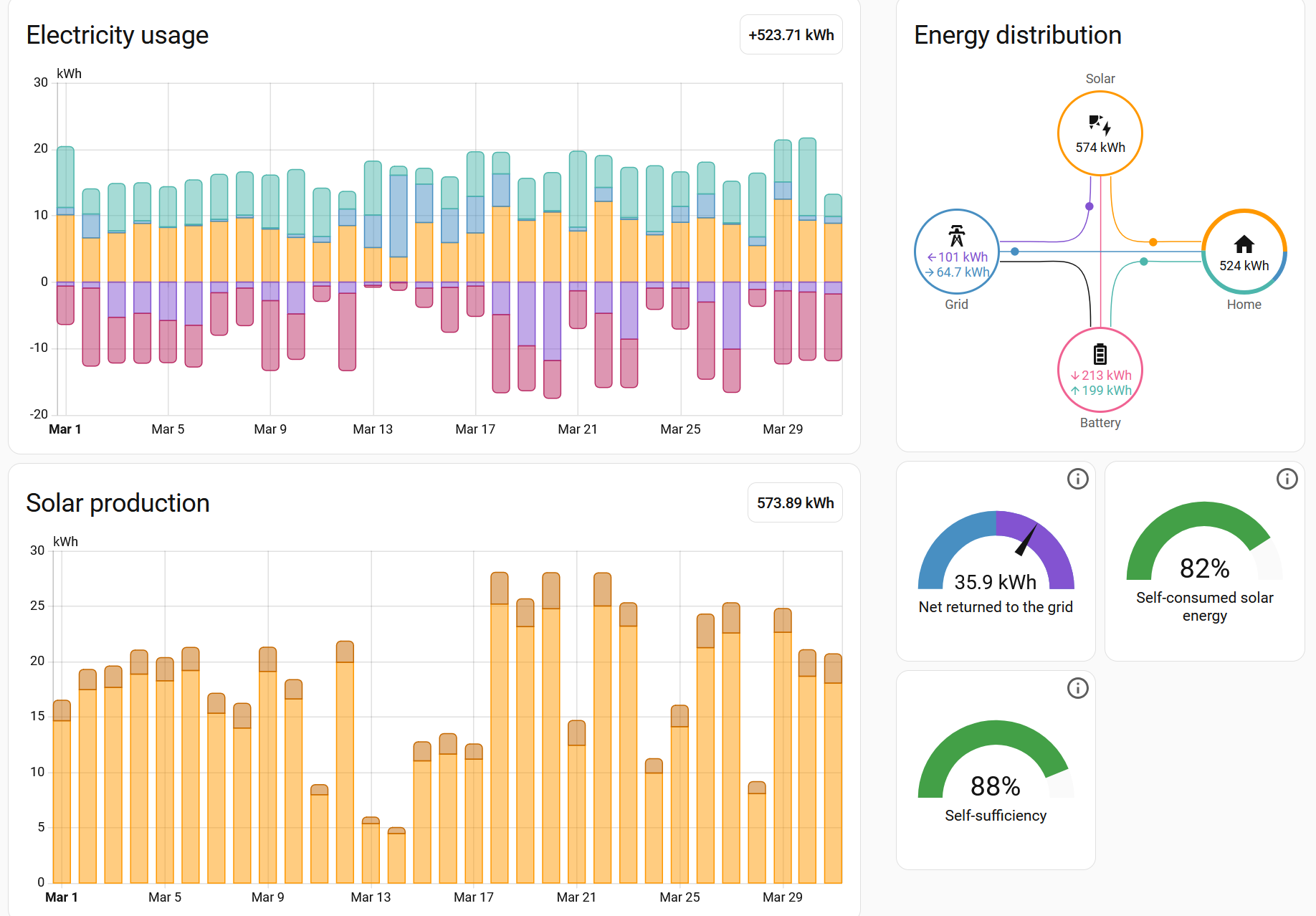 69.4 % Eigenbedarf Deckung, 64.3 % Eigennutzung nach offiziellem Zähler