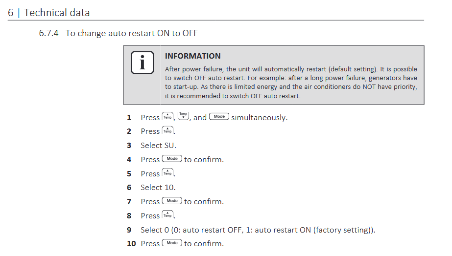 Hab jetzt mitbekommen, dass die Daikin nach Stromausfall selbstständig wieder so anfährt, wie sie eingestellt war/ist.