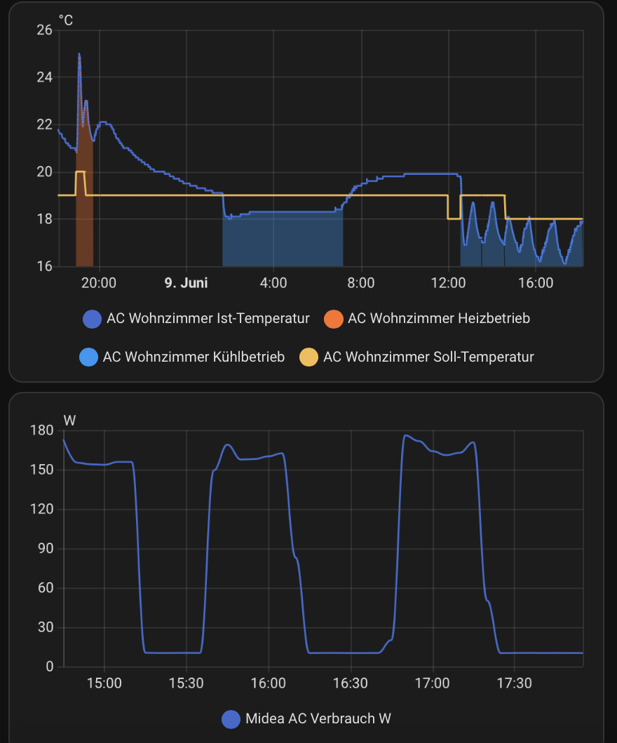 Die Integration in Home Assistant mit der HACS "Midea Smart AC" Integration ist ziemlich perfekt und läuft nun ohne jegliche Probleme seit 2 Monaten.