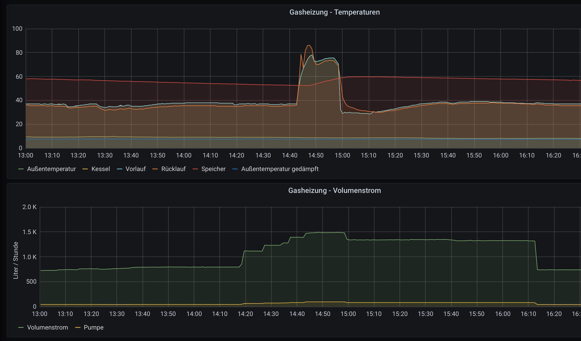 Vcontrold liest die Daten aus und Vitocollect speichert die Daten dann in ein klassisches InfluxDB / Grafana Monitoring Setup: