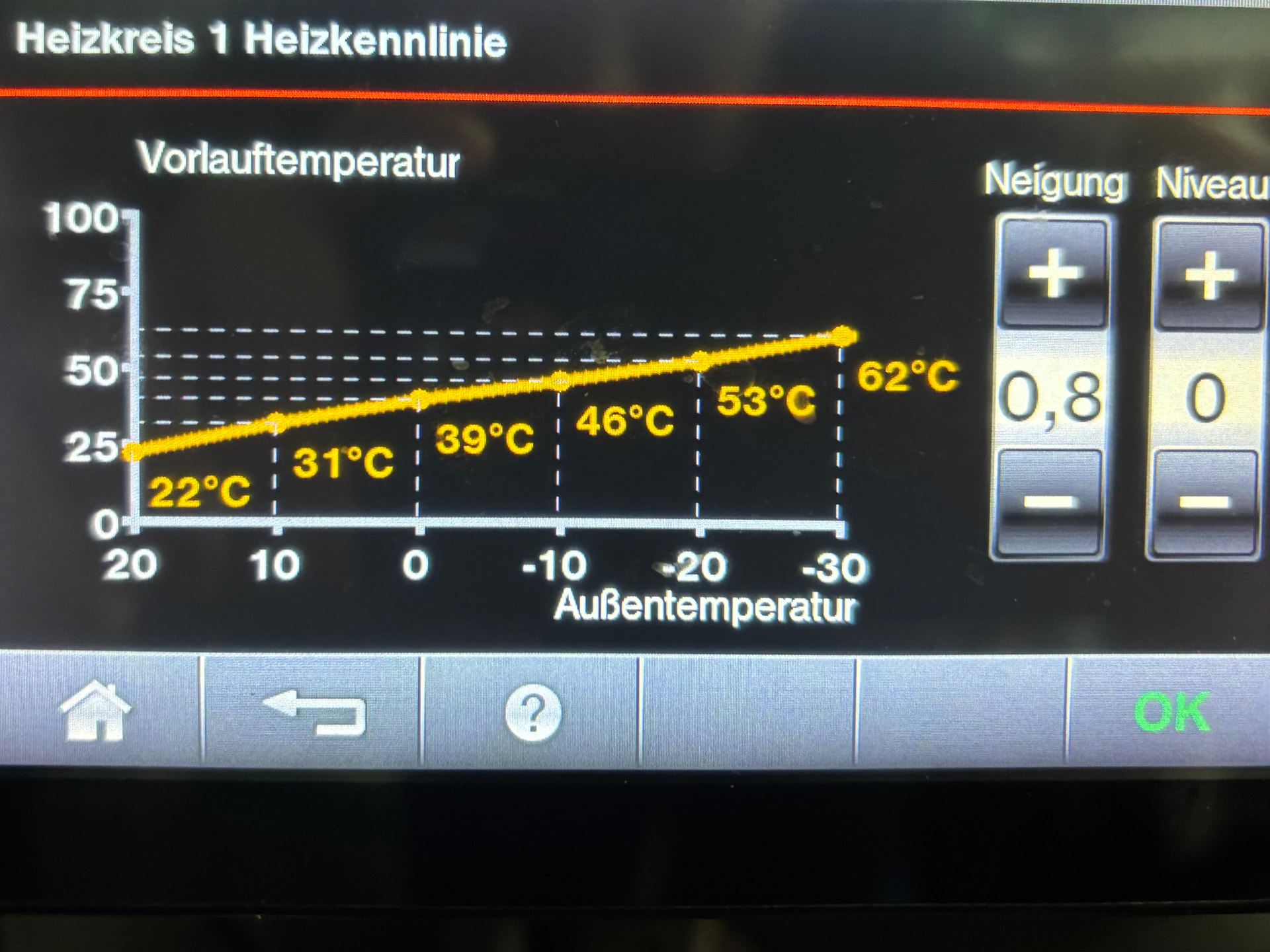 Resultierende Heizkurve mit der ich aktuell fahre:
