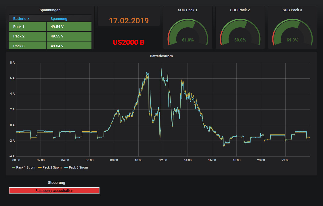 Die Solaranzeige kann den Seplos BMS Version 2 / 3 auslesen und grafisch darstellen. Dazu wird ein Raspberry Pi benötigt und einen RS485 zu USB Adapter. Die Solaranzeige ist ein Open Source Projekt seit 2016