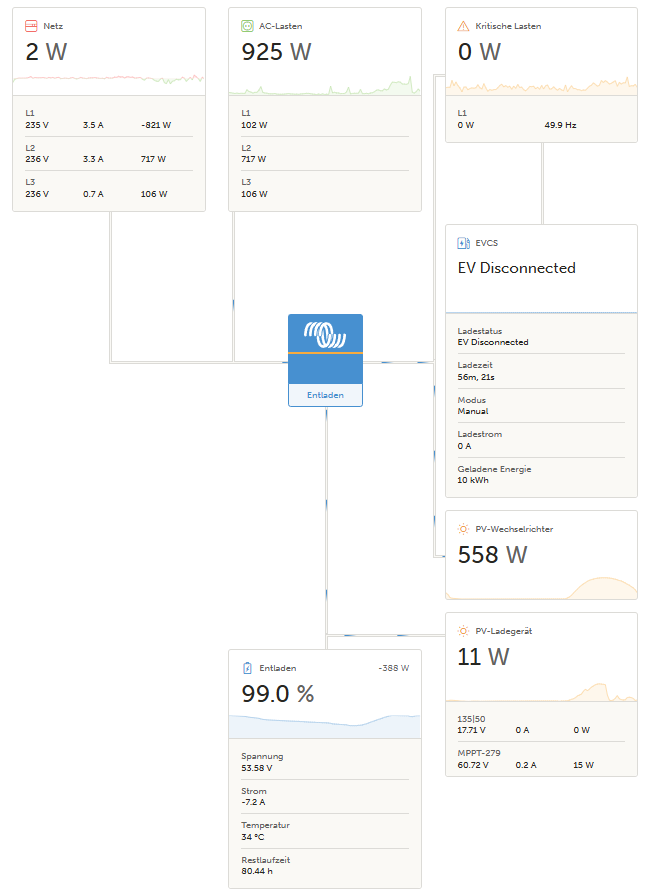 Gibt es inzwischen eine Lösung für das Problem dass die MPPT's auf 0 runterregeln wenn der Akku voll ist? Habe das gleiche Problem, der 135/50 geht auf 0W runter der andere ist bei 15W, müsste viel mehr sein, der AC-Wechselrichter liefert ja auch noch
