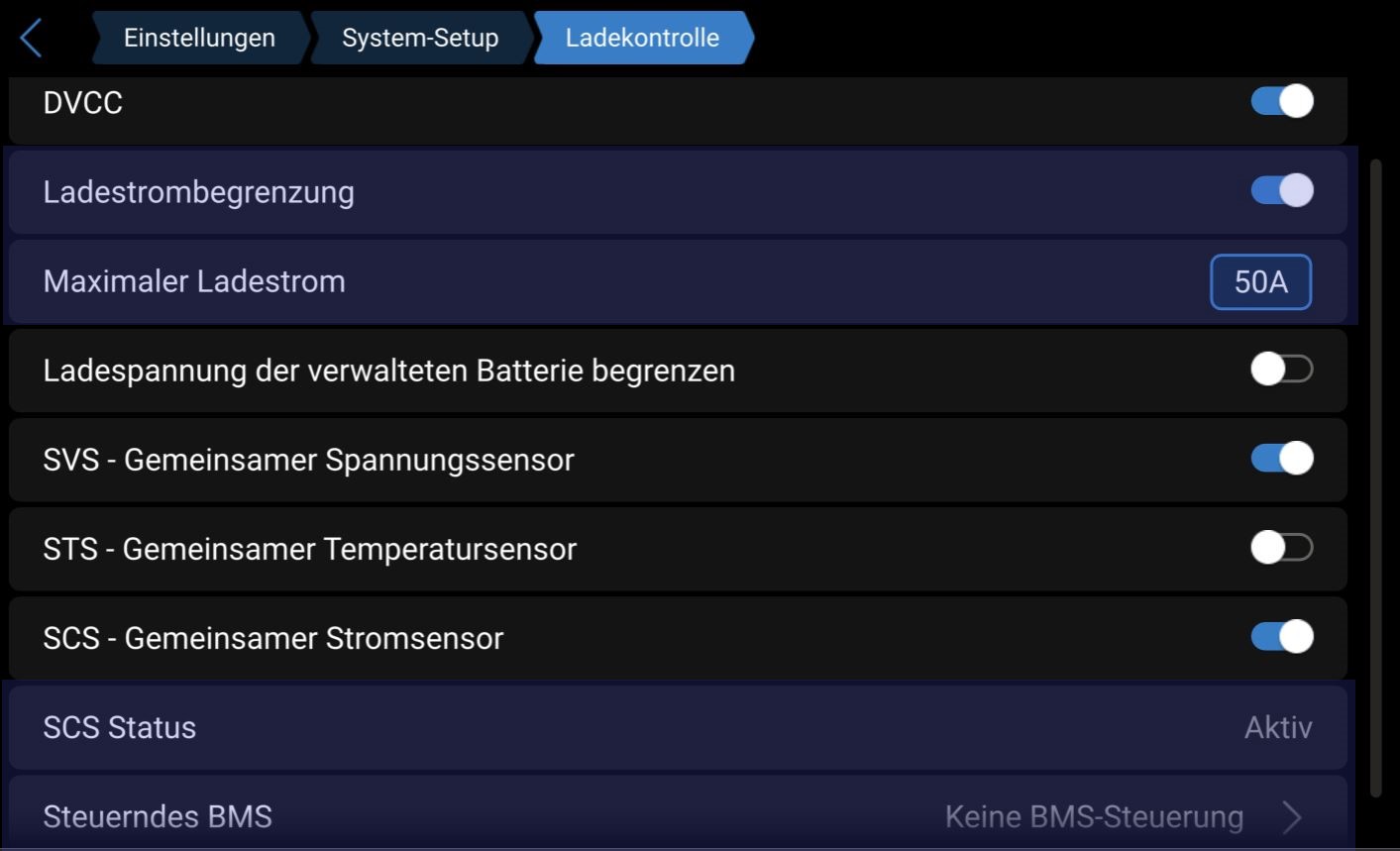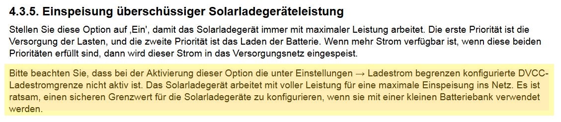 Wenn nur ein Lader da ist, könnte man dessen Strombegrenzung benutzen, an die man aber glaubich nicht vom GX aus dran kommt, jedenfalls habe ich nirgends die Möglichkeit gesehen, auf die Einstellungen per VE.direkt zuzugreifen, geschweige denn im GX .