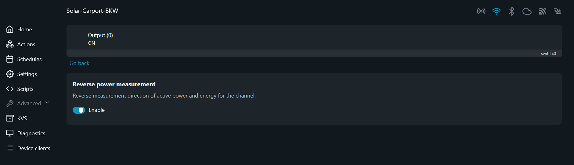 In Zeile 168 einfach ein - vorran. power = -meter_data['pm1:0']['apower']