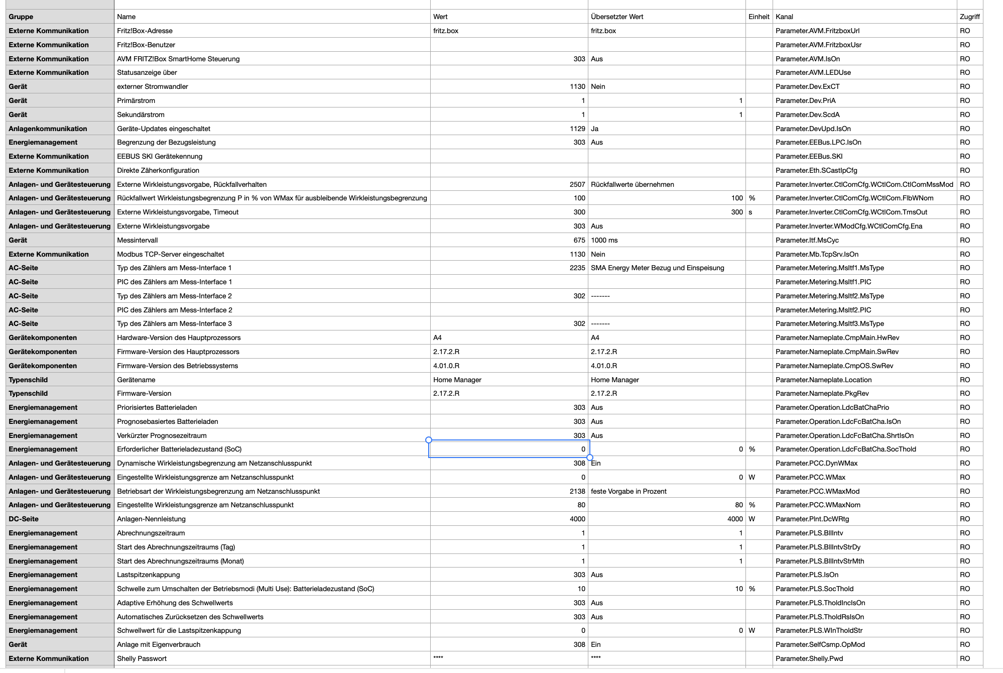 Home Momentanwerte Geräteparameter Ereignisse Gerätekonfiguration Daten