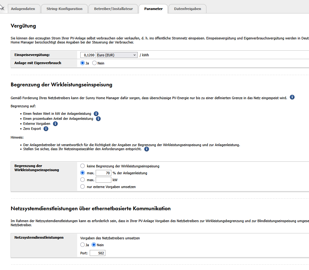 Regelung am Netzanschlusspunkt 100,00 % (0,00 % … 100,00 %)