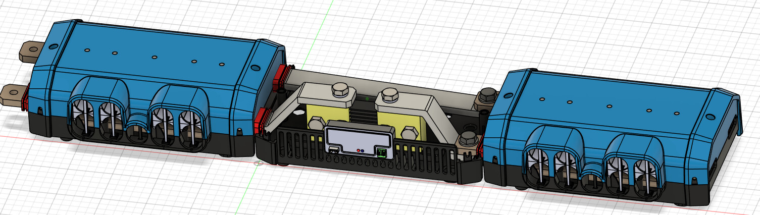 Basierend auf den 3D Files habe ich ein paar kleine Sachen abgeändert. Von der Funktion des Batterieschalters halte ich nichts, deswegen ist der raus geflogen. Dafür habe ich eine kleine Spannugsanzeige integriert. Einmal um den Precharge zu visualisieren und auch so sind ein paar leuchtende Anzeigen nie verkehrt :)