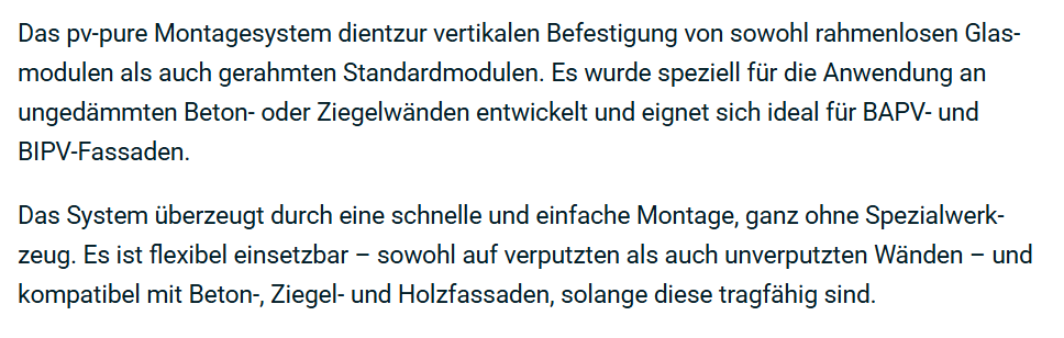 Danke für den Tipp, ich schau mal, hätte nicht gedacht dass das ein Problem darstellt, würde als Laie sogar denken, dass es einfacher ist, irgendwelche Metallschinen auf die Mauer schrauben und dann die Module befestigen…