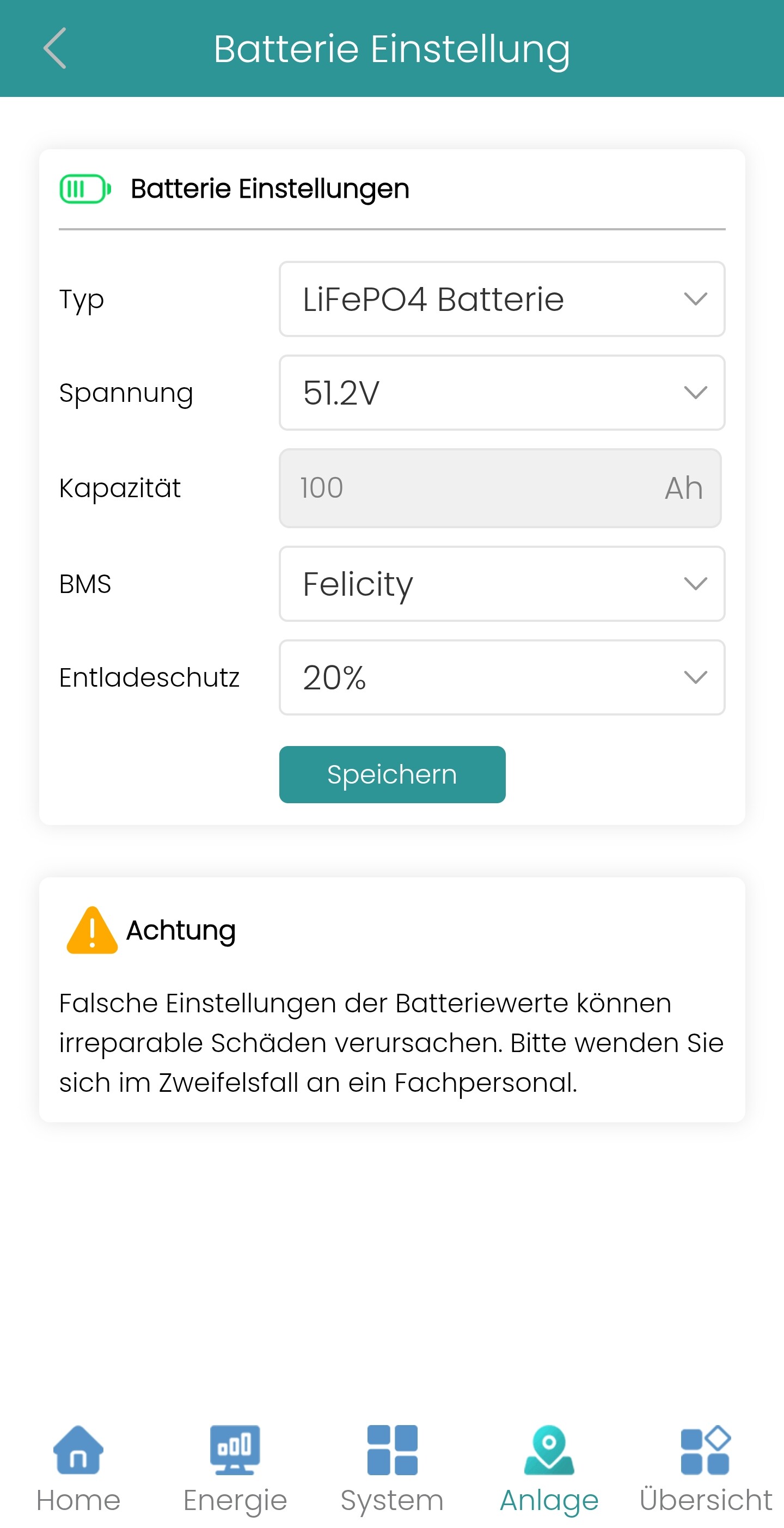- Zeige bitte mal einen Screenshot deiner Batterieeinstellungen (Anlage-batterie auswählen-passwort eingegeben [2025-04-15]). Die daten die dort dann erscheinen, davon bitte einen Screenshot posten.