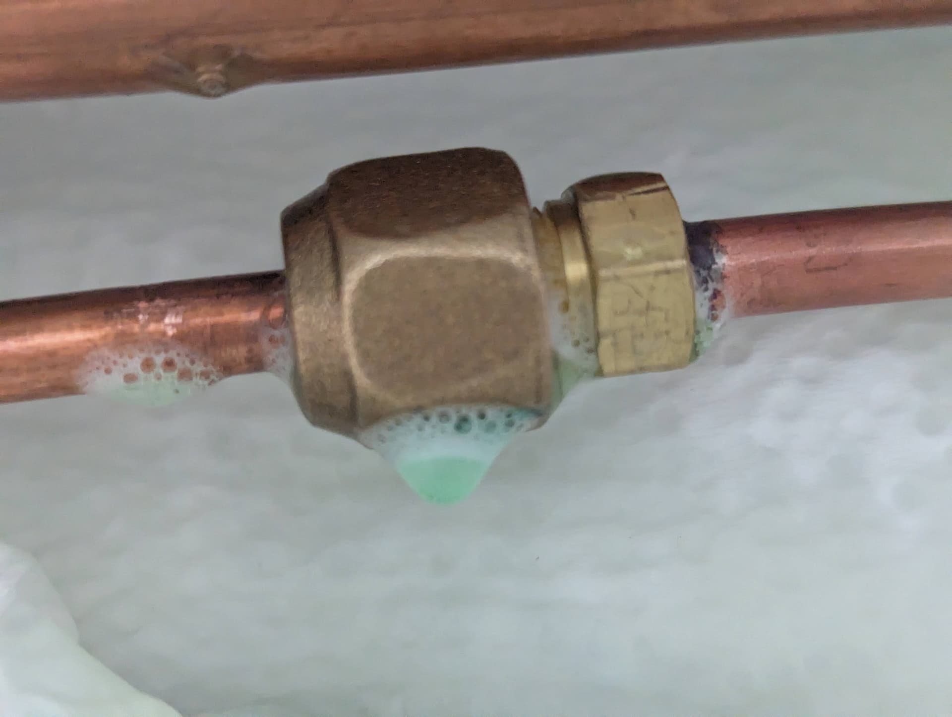Grundsätzlich gilt: Nach der Prüfung sollten alle Lecksuchmittel nochmal mit Wasser entfernt werden. Geht mit einer Sprühflasche gut.