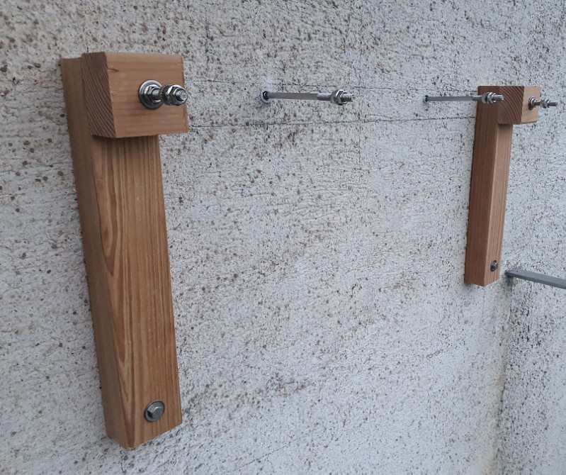 Sind bisher Nylondübel, also noch relativ einfach die Stockschrauben auszuwechseln (Solange das Außengerät nicht aufgehangen ist).