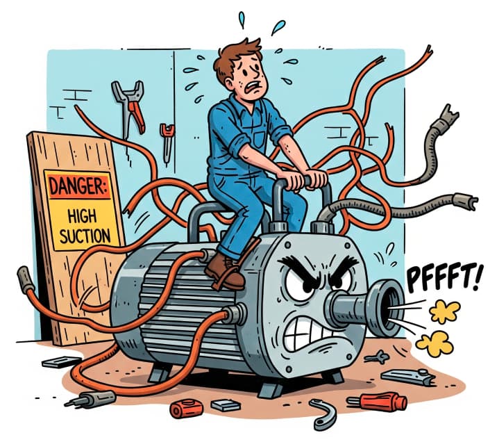 Und noch eine weitere Sache: Es gibt Vakuumpumpen, die für R32 freigegeben sind. Diese sind so gestaltet, dass es im Gerät nirgendwo zu offenen Funken kommen kann, es werden also z.B. luftdicht gekapselte Schalter verwendet. Es geht also um Explosions- und Brandschutz beim Umgang mit brennbaren Kältemitteln. Bei der Erst-Evakuierung einer Anlage kommt die Pumpe nicht mit R32 in Kontakt, insofern wäre es nicht nötig. Wenn eine Anlage aber bereits mal in Betrieb war und nach einer Reparatur wieder evakuiert wird, könnten Kältemittelreste durch die Pumpe gezogen werden, dann wird es relevant. Ebenso kann es immer zu Fehlern kommen, ob durch menschliche Fehler oder technische Fehler. Dann könnte vielleicht doch R32 durch die Pumpe gezogen werden.