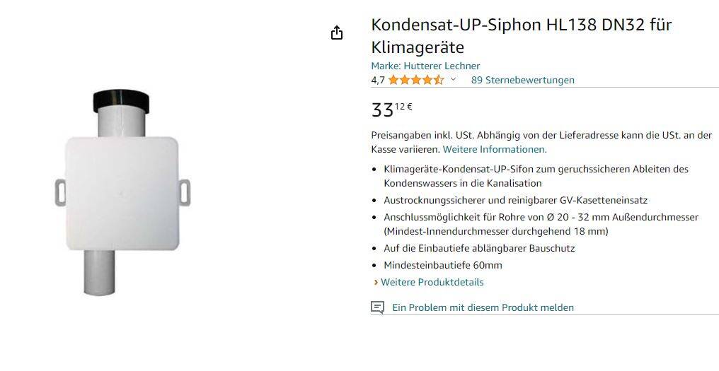 Ich habe für beide Schläuche Siphons installiert, wobei im Schlauch für den Heizmodus immer mal gerne Wasser stehen bleibt...ob das im Winter funktioniert wird sich zeigen.