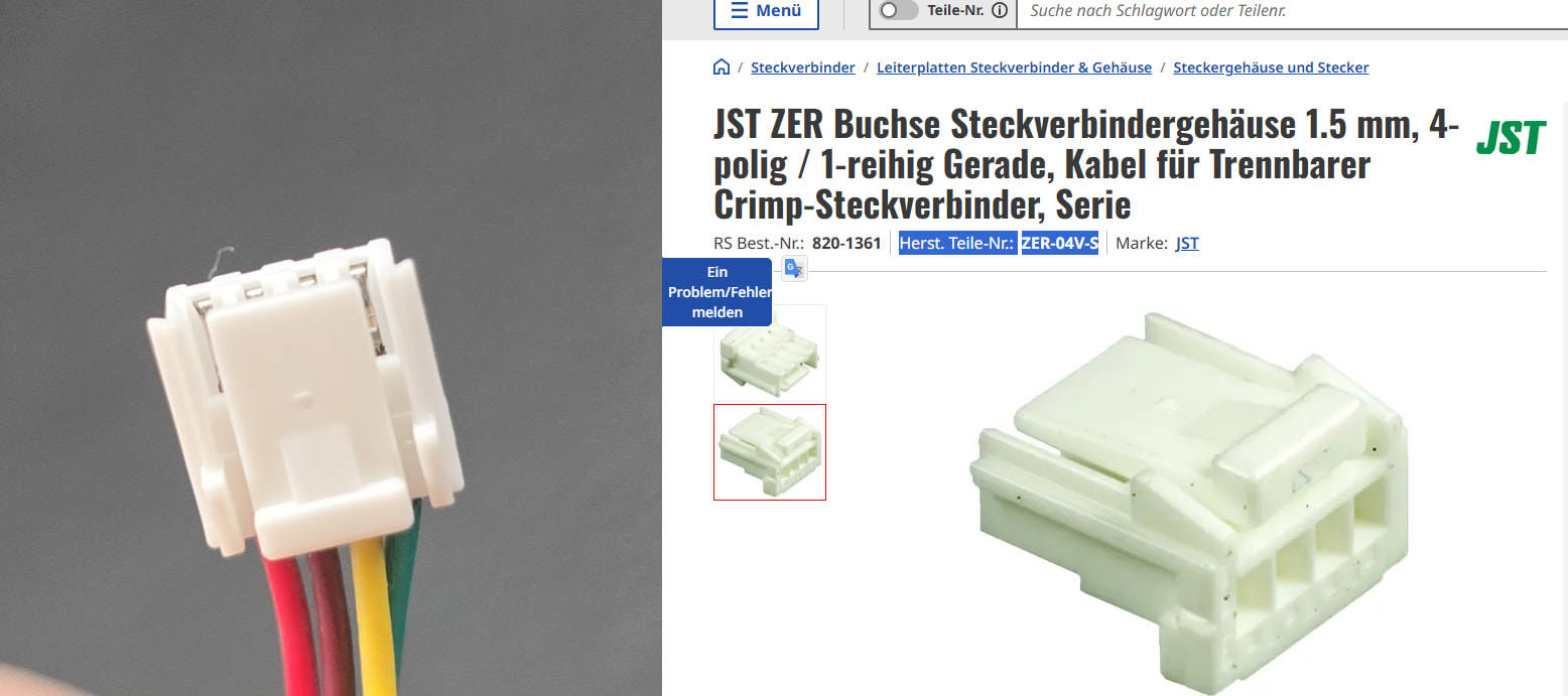 Ich habe euch Fotos der Anschlussbuchse auf der Platine sowie Bilder des weißen Steckers inklusive Maßen beigefügt, damit man es besser vergleichen kann.