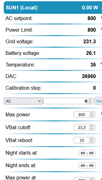 an Akku 1 entlädt der Sun, an Akku 2 nicht. Ich habe sogar schon das BMS überbrückt. Vergeblich. In der Oerfläche erkennt man den Shelly 3EM und das der auch Bezug anzeigt.Aber der WR kommt nichts ins arbeiten. Bei 26,1 V die auch am WR Eingang anliegen müsste der doch starten.