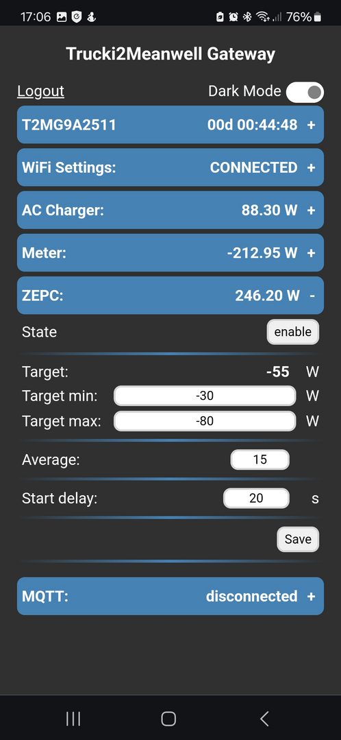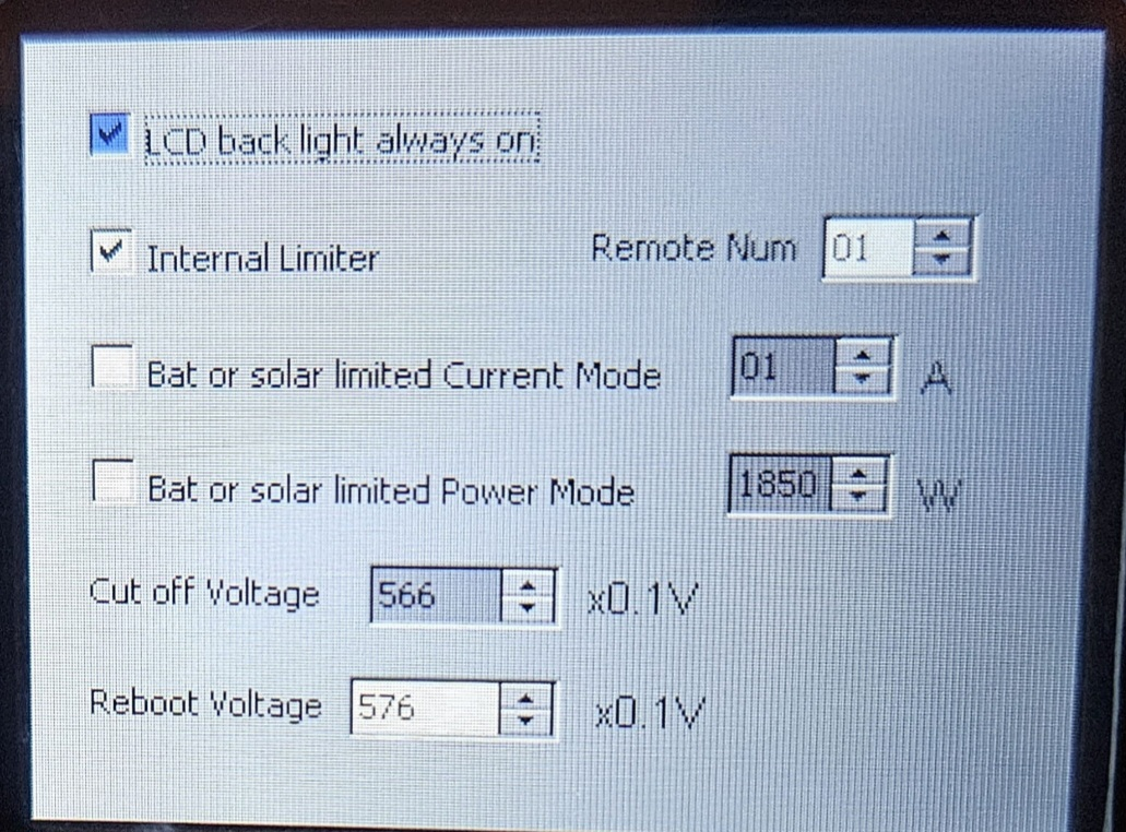 ich habe bei mir auch noch "Bat or solar limited Power Mode" angehakt, weiss aber nicht, ob das wirklich nötig ist.