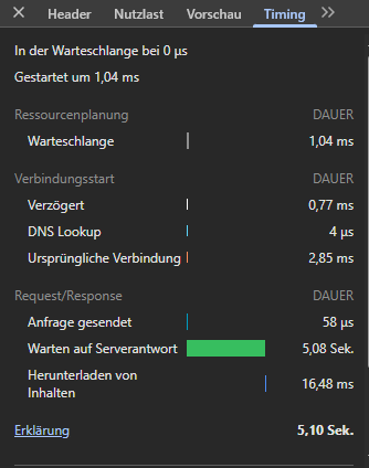 So sieht mein Script aus. Es werden zwar einige Daten mehr übermittelt, aber unter 1.09 bzw 1.14 Zeiten von um 50 ms und keinerlei Probleme. Dass die Zeit mal auf 100-120 ms hoch geht, mag ja in Ordnung sein.
