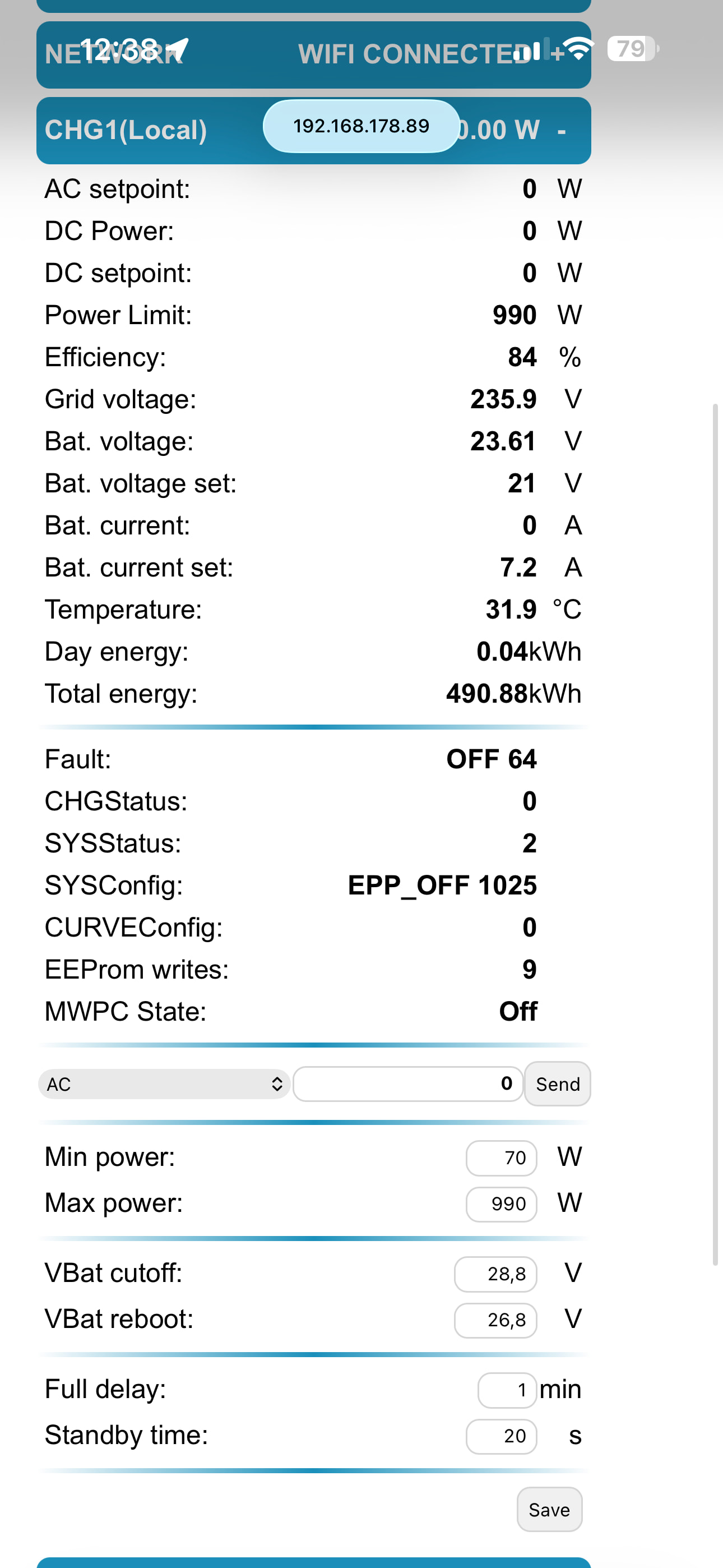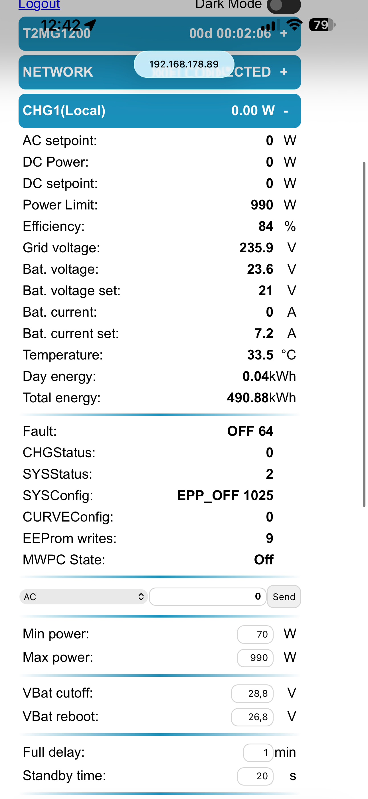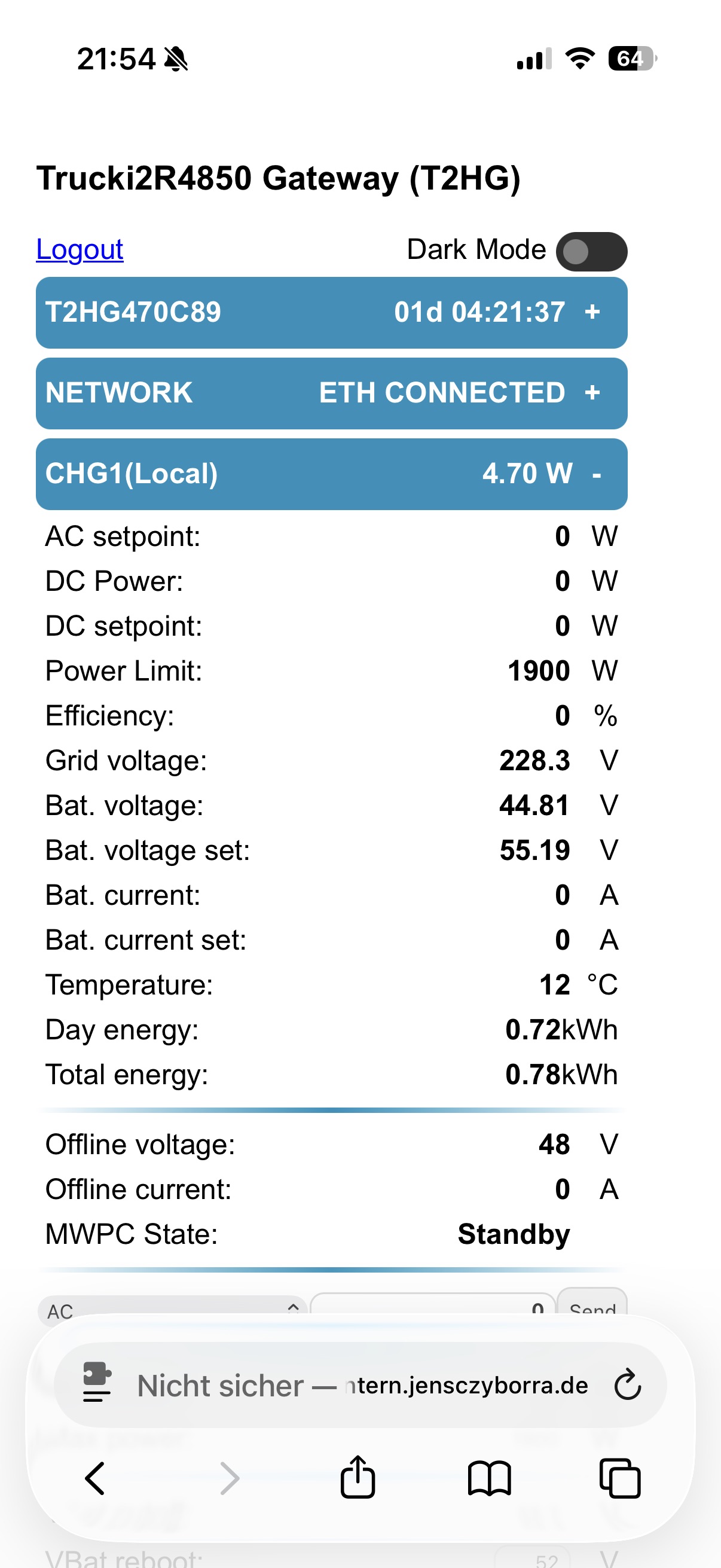 Wo kommt das „linked“ her? Es scheint um diese Uhrzeit keine Sonne und das T2MG, z.Zt. auf 1.09, lädt auch nicht manuell.