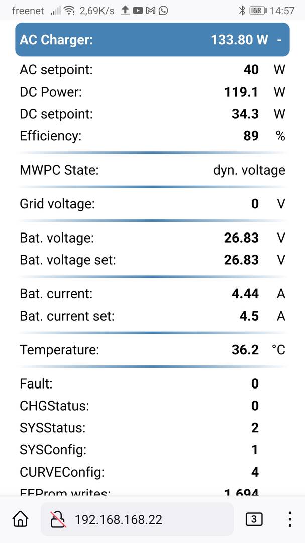@unlight ja, T2MG1.05 prüft beim Start die Meanwell Firmware. Wenn bei Sysconfig EEP_OFF steht, dann hat das Ladegerät die neue MW Firmware( 2024/02) und die EEProm Schreibzugriffe werden abgeschaltet.