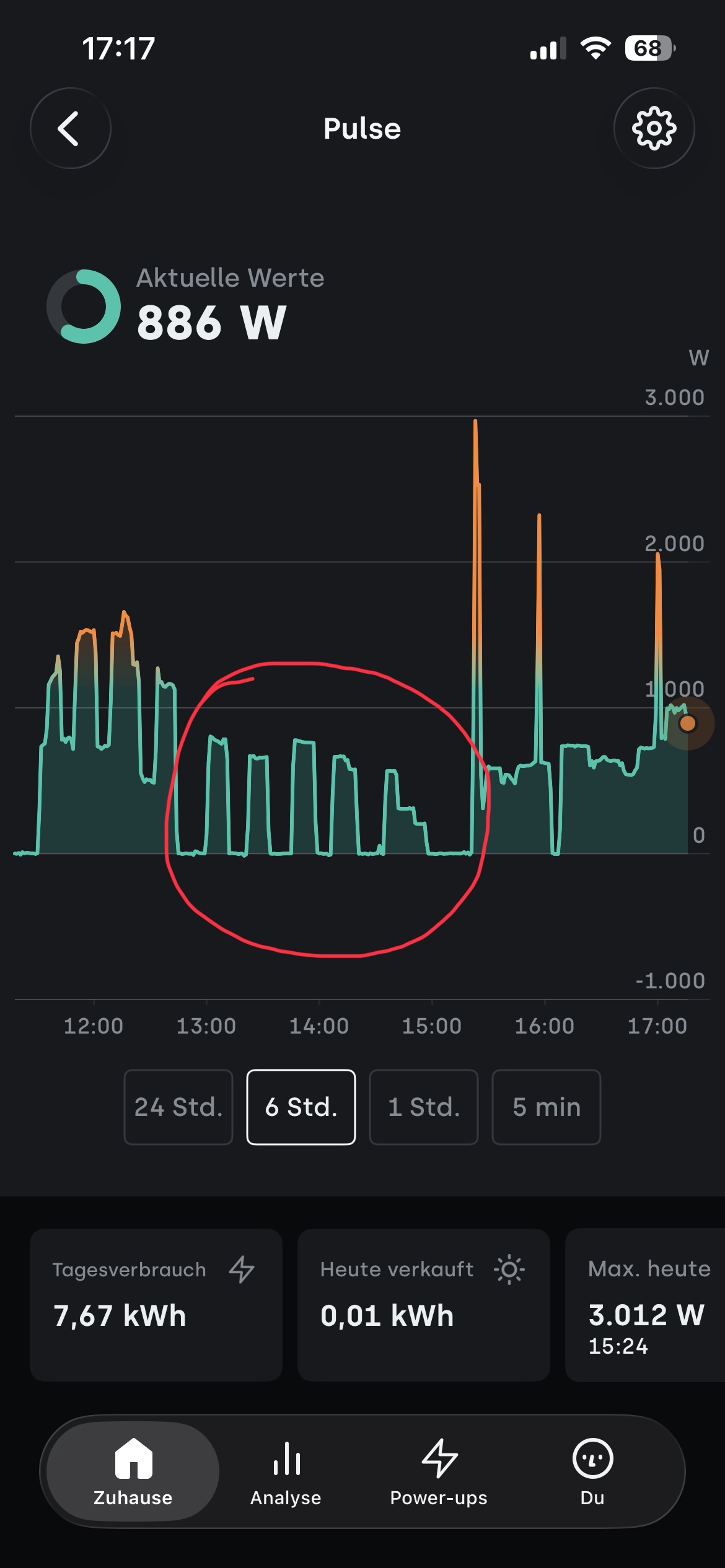 Energieversorgungsstrategie: Teilautomatisierte Überwachung, Grundlast auf 800W eingestellt (der alte Zähler läuft ja vorerst auch rückwärts )
