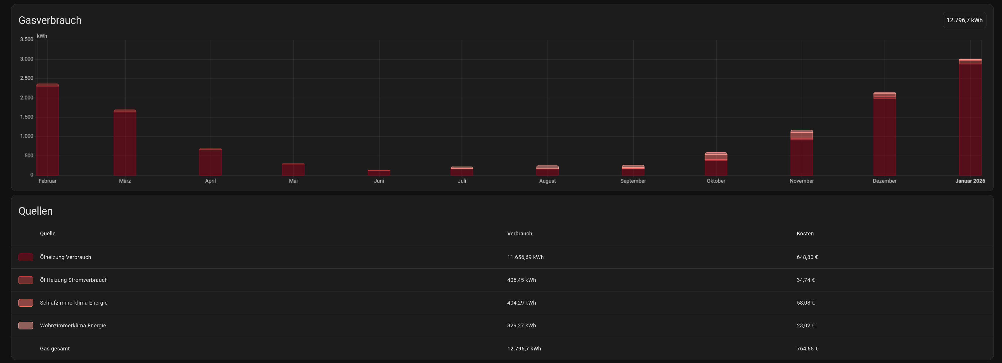 Verbrauchsdaten der Ölheizung (11/17kW):