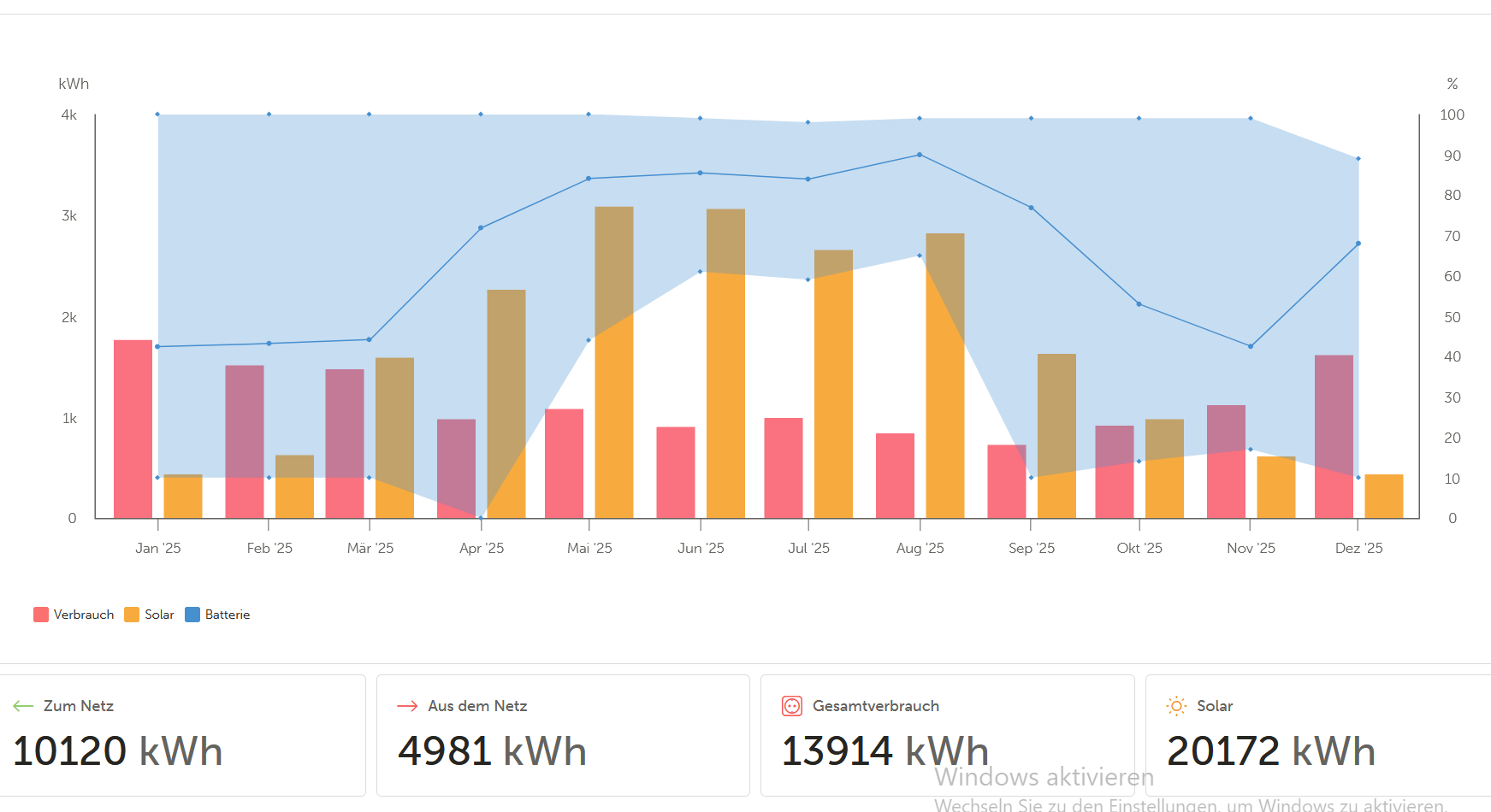 Und wenn du nun 200kWh verheizt hast, und das aus der PV kam, dann hast du noch mehr gespart, weil nicht gekauft.