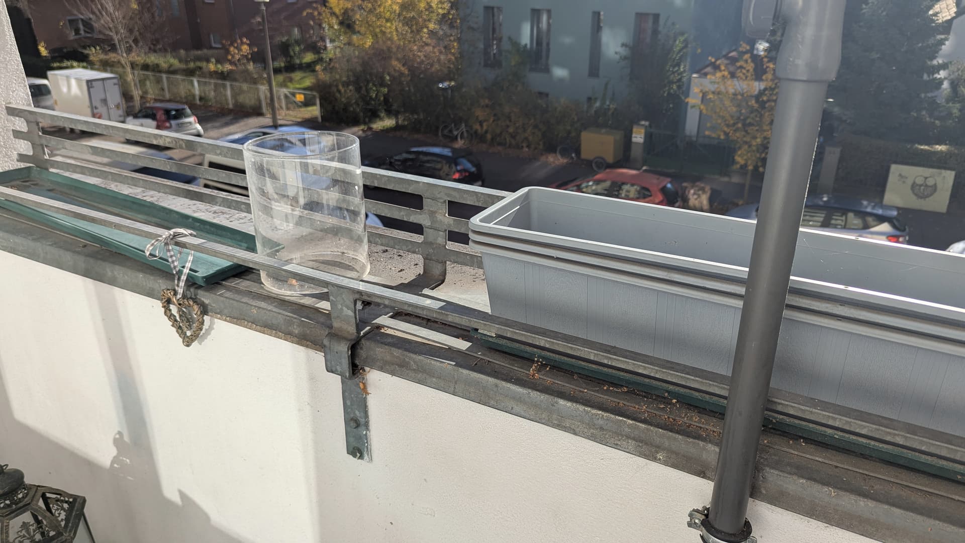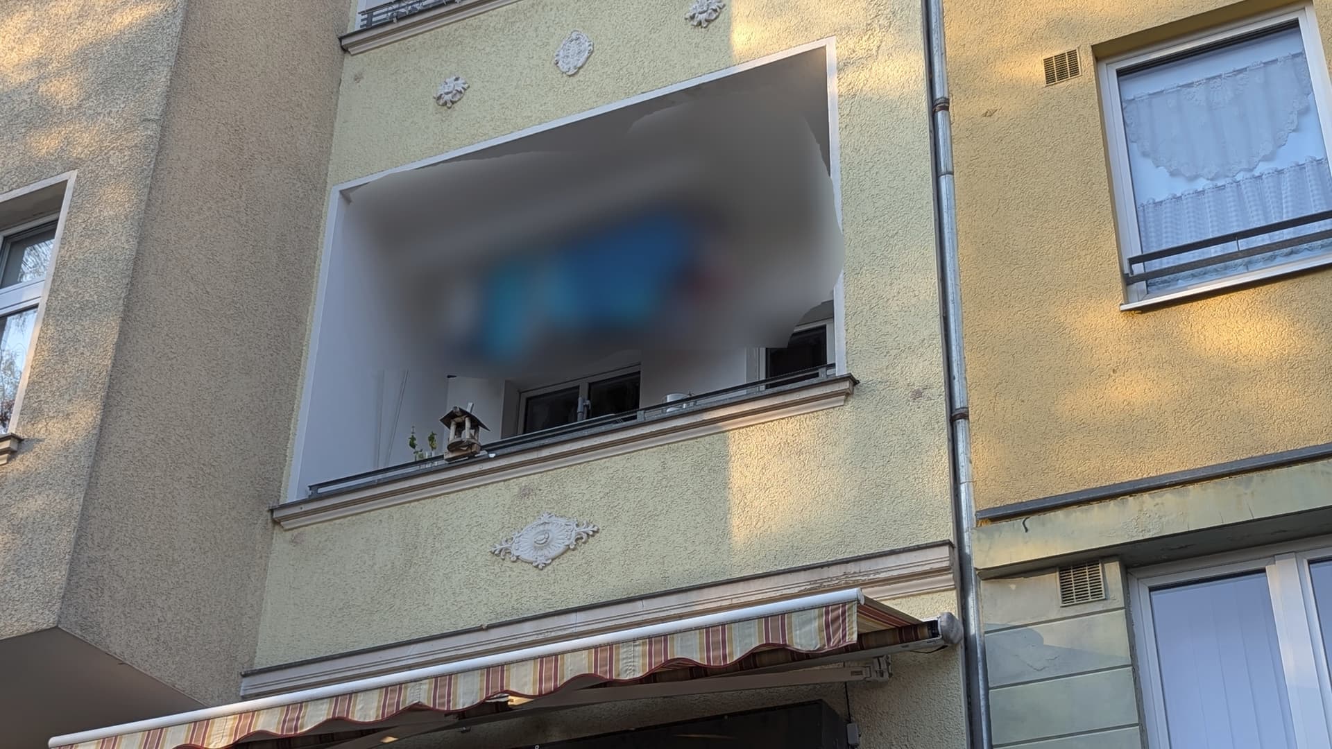 Dann geht die Mauer des Balkons also nicht Stein auf Stein bis auf den Boden. Unter dem Balkon scheint eine große Fensterfront zu sein wie man aus dem großen Sonnenschutz erahnen kann. Da ist dann halt die Frage wie die Gewichtsverteilung des Balkons nach unten ist.