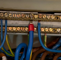 Andere konstruktiv gemeinte Anmerkung. In den UVs dieser Generation finde ich nicht unhäufig Fehler=Schmorbrände durch lockere Verbindungen und dabei ist sehr oft der Neutralleiter im Spiel der mit einer Schraubverbindung auf der Sammelschiene befestigt ist. Du hast oben ggf auch so einen Kandidaten in 16mm².