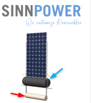 Das Bild zeigt es ja schön: Ein runder Schwimmkörper, an dem das Modul hängt. Und darunter mit vielleicht 50cm Abstand ein rundes Gewicht, was das Teil senkrecht hält. So kann das Teil dann auch schön wegkippen, wenn Wind ist.