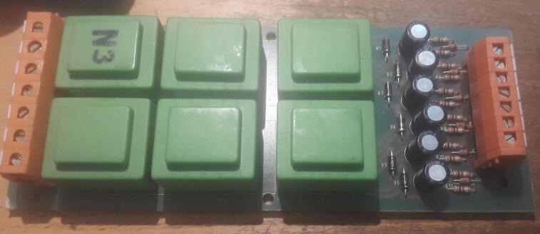 Gestern eine 80er/90er Jahre WP-Steuerung ausgebaut und erstmal gewundert: Wofür braucht eine Steuerung 12 Netztrafos? - Des Rätsels Lösung: Je 6 Eingänge für 220V potentialgetrennt auf eine Uralt-SPS. Von diesen hier waren 2 Stück montiert: