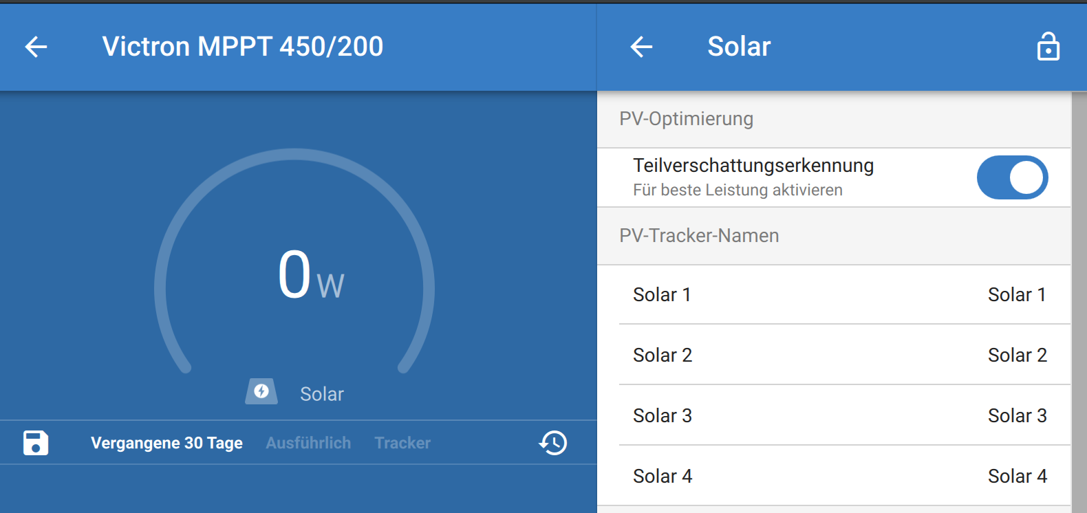 Laut Victron spielt diese Verfahren seine Stärken nicht oder nicht nur bei (Teil-)Beschattung der Module oder Strings aus, sondern bei wechselnden Lichtverhältnissen, also bei Veränderungen der Bewölkung.