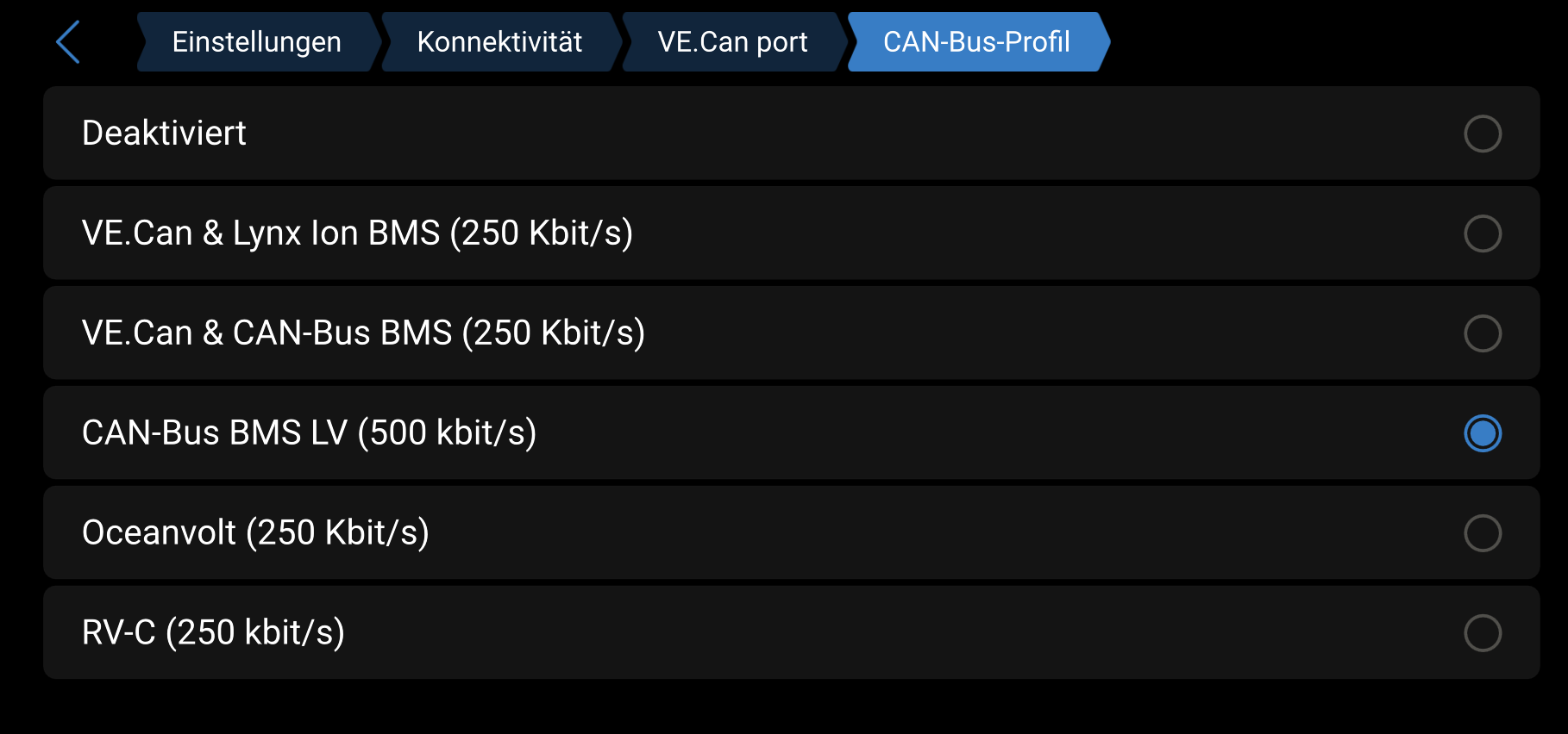 Ist mir Nicht bekannt. Du stellst den CAN Bus auf diese Settings und im JK BMS auf 04 Victron CAN und es funktioniert.