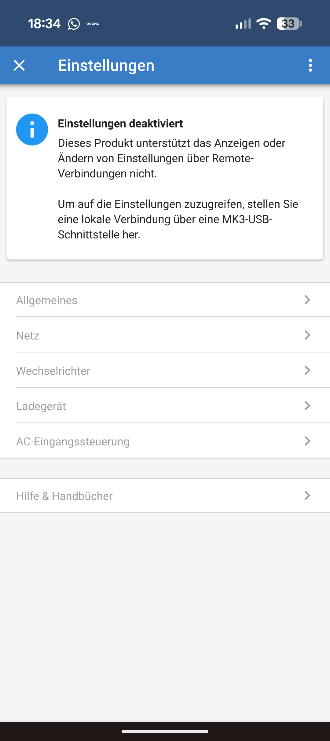 Betreibe das als kleinen “Sport” keinen zu kaufen und bisher klappt es . Da man einen MK3 meist am Windows betreibt, vielleicht die Info bzgl. Victron Connect und Android für den TE hilfreich. Das VE Bus Tool läuft wohl nur auf Windows.