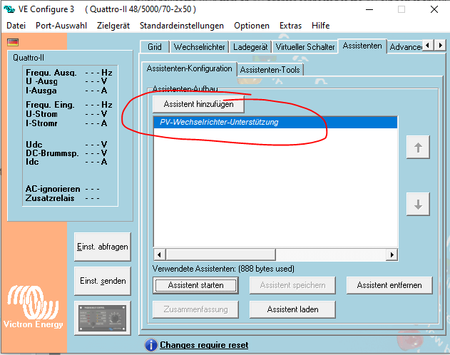 Aber, damit der Multiplus das kann muss der entsprechende Assistent in der Konfig installiert und konfiguriert sein.