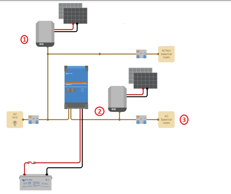 Mein bisheriges Balkonkraftwerk möchte ich an Punkt 2 anschließen, da es dann noch bei Ausfall von AC Grid die Batterien lädt bzw. die essential Loads unterstützt. (Stimmt das?)